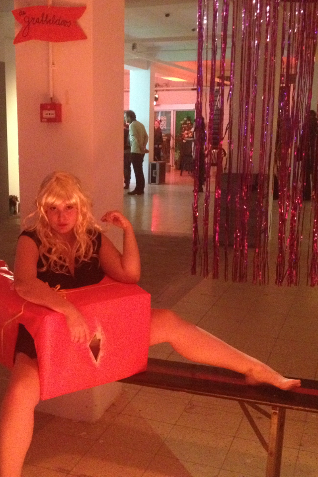 Tijdens deze performance is de dame in de doos zo doozig mogelijk. Met een blonde pruik, lange wimpers en een kauwgompje. Flirtend om mensen te verleiden te komen grabbelen. Als het zo ver is; word er een intiem moment gecreëerd. Mensen krijgen instructies voorzichtig binnen te dringen en ondertussen oogcontact te houden. Zo worden ook personen met vandalistische neigingen of, mensen die er halfslachtig vanaf willen komen, gedwongen de ervaring bewust te beleven.
